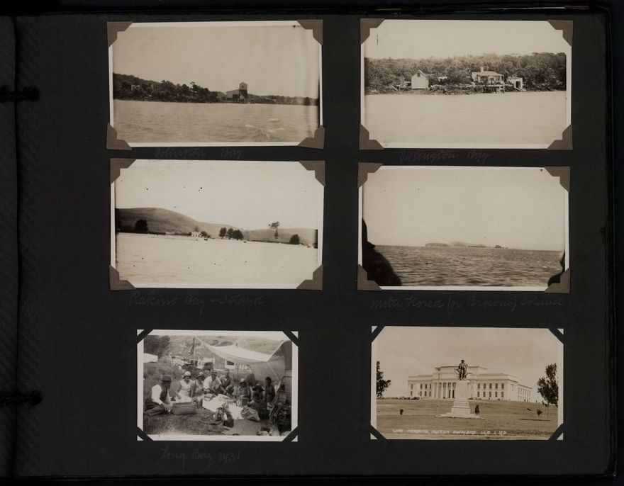 Album contains photographs mainly of the Auckland area, Charles and Elizabeth Thompson and their children (Beth, Elayne and Maurice), Macauley family, Thompson home and farm on Milson Line, Bunnythorpe factory and sub-station, Wanganui and Flock House