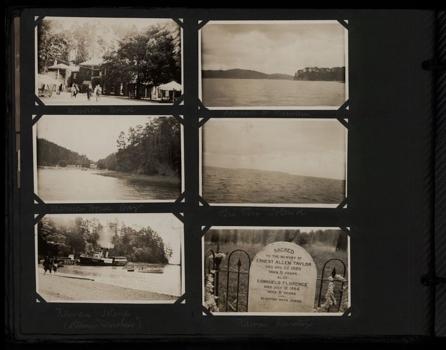 Album contains photographs mainly of the Auckland area, Charles and Elizabeth Thompson and their children (Beth, Elayne and Maurice), Macauley family, Thompson home and farm on Milson Line, Bunnythorpe factory and sub-station, Wanganui and Flock House