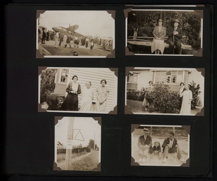 Album contains photographs mainly of the Auckland area, Charles and Elizabeth Thompson and their children (Beth, Elayne and Maurice), Macauley family, Thompson home and farm on Milson Line, Bunnythorpe factory and sub-station, Wanganui and Flock House