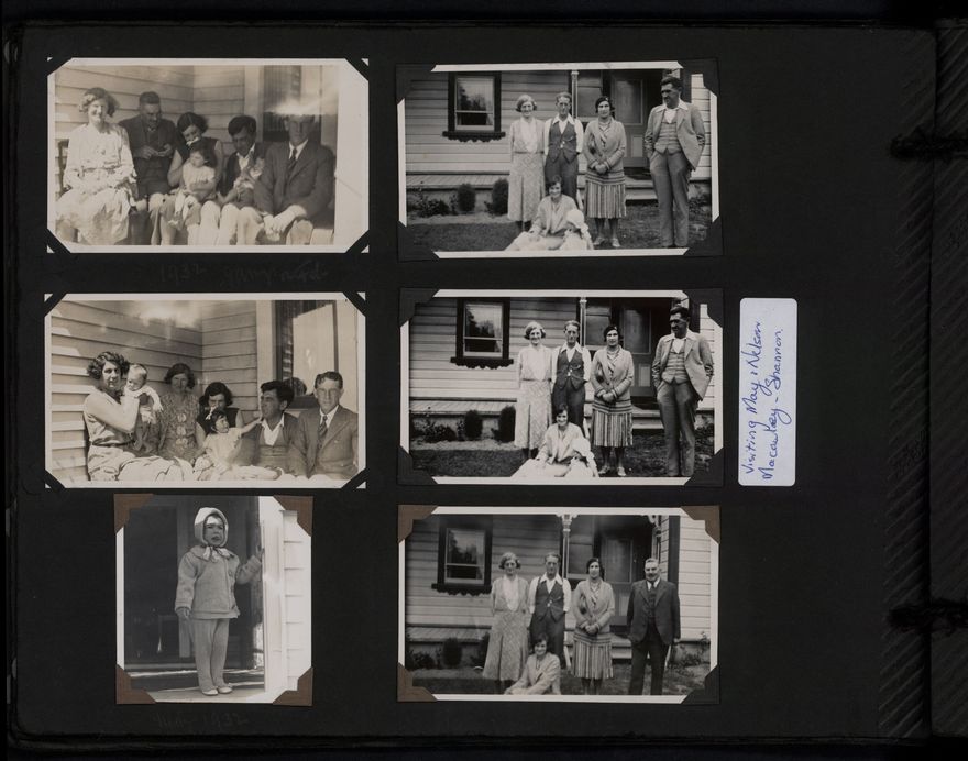 Album contains photographs mainly of the Auckland area, Charles and Elizabeth Thompson and their children (Beth, Elayne and Maurice), Macauley family, Thompson home and farm on Milson Line, Bunnythorpe factory and sub-station, Wanganui and Flock House