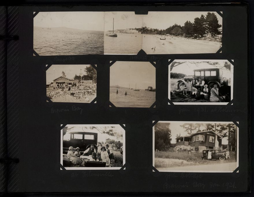 Album contains photographs mainly of the Auckland area, Charles and Elizabeth Thompson and their children (Beth, Elayne and Maurice), Macauley family, Thompson home and farm on Milson Line, Bunnythorpe factory and sub-station, Wanganui and Flock House