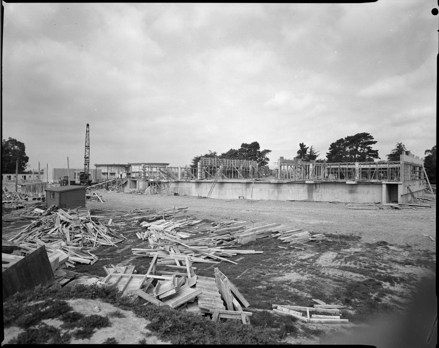 The sewerage treatment plant beside the Manawatu River opened in 1968, replacing the septic tank and filter beds which had been in use since 1905. Some images from this collection have been digitised from prints housed in other archival collections. This image is from an original negative.