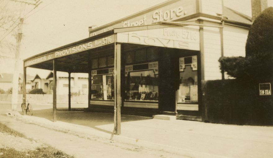 This dairy is the oldest retail business in Terrace End still open, trading under the name Candy Corner (2009). The shop was opened in 1906 by James Butcher. Since then it has had many owners and traded under several names. In 1934 it was known as Bovis Stores Ltd. and in 1936 became the Ruahine Street Dairy. In 1943 a Co-op shop was built alongside it (and later closed) and in 1957 it became the Candy Corner.