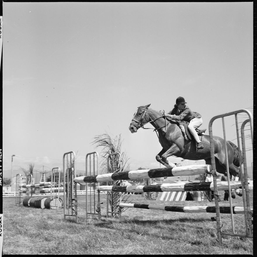 [Image of a horse jumping a fence, possibly at the Horowhenua A,. P. and I. Show.]