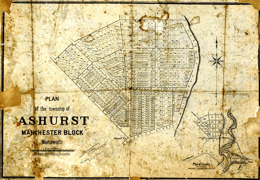 Plan of the township of Ashhurst, Winchester Block. Handwriting on the plan is dated 1879.