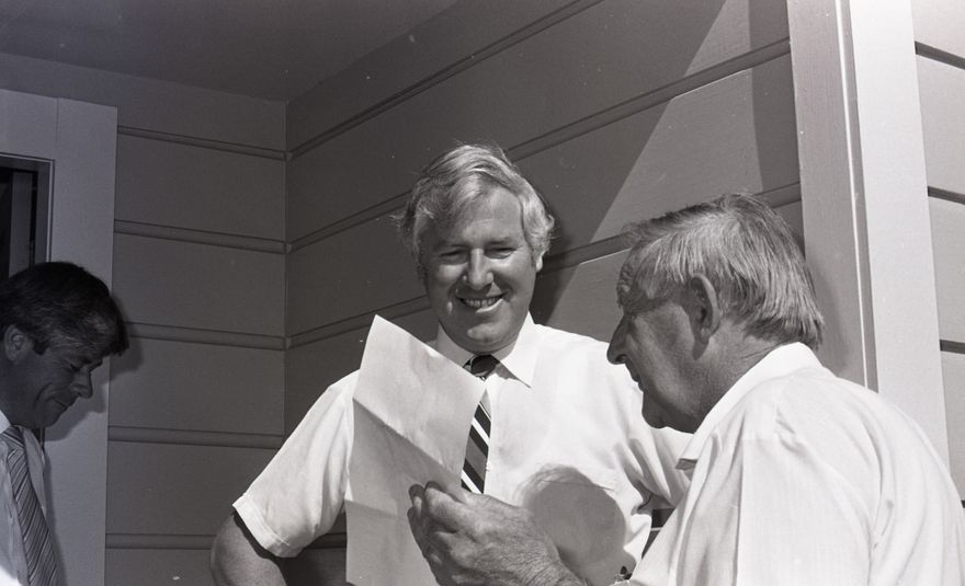 This series of images was taken for a story that ran in on the front page of The Manawatu Evening Standard on 10 February, 1987. The story pertains to the mortgagee auction of a farm owned by Paul Geurtjens of Bulls. Up to 700 protesters attended the auction at Harcourts real estate on Fitzherbert Avenue. Auction proceedings were interrupted by protesters placing false bids and drowning out proceedings. The property was not sold as it didn’t raise a bid. The images of Longburn workers protesting appear on the same roll of film, however it is unclear if theese are from the same event.