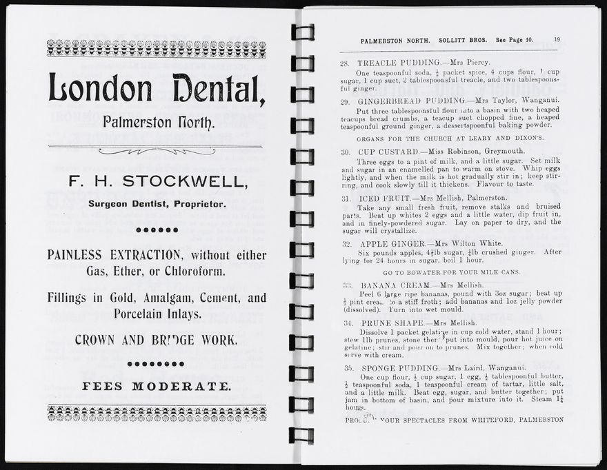 A reproduction of Our Own Cookery Book compiled by Mrs J. West for the Ashhurst Town Band Bazaar. The cook book features community submitted recipes (including the names of contributors) and includes many advertisements of local area businesses.