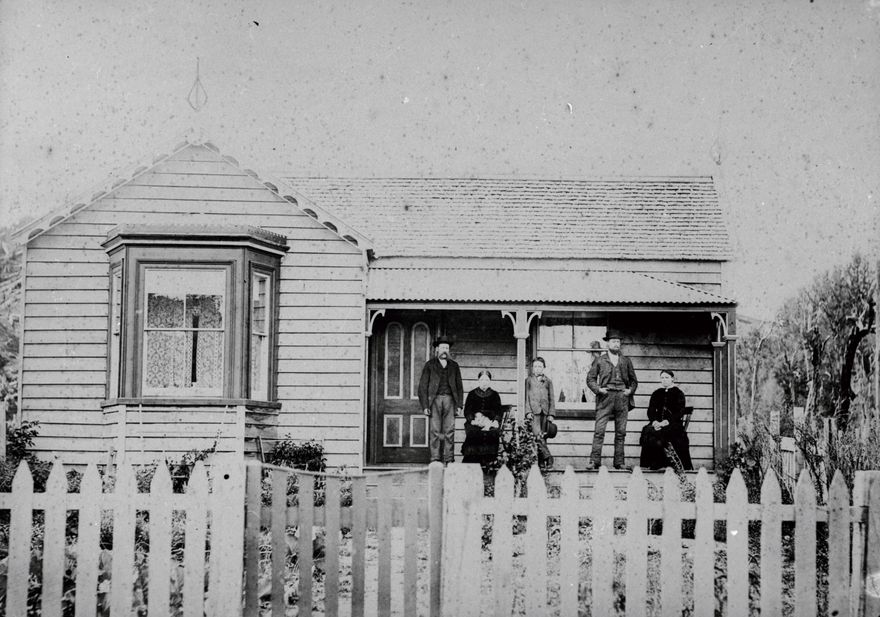 Early Scandinavian settlers of the Seventy Mile Bush area of Wairarapa. From left: Mr and Mrs Peter Nielsen; John Madsen, aged about 13 years; Mr & Mrs Christen Madsen, parents of John.