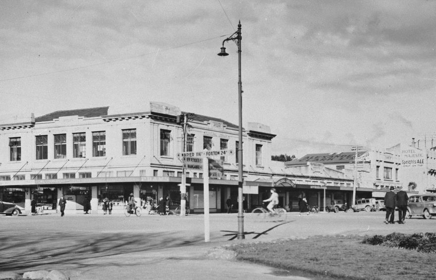 The Library was purpose built by the Palmerston North Borough Council on the corner of Fitzherbert Avenue and The Square and served as the fourth Library 1929-1965. It occupied the First Floor and shared the Ground Floor with shops.