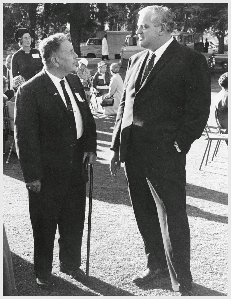 - A reception for 350 old Palmerstonians was held at Caccia Birch house, as part of the celebrations to mark 100 years of the Borough of Palmerston North. Here Mr Norman Kirk, leader of the Labour Opposition, is seen talking to one of the local identities.