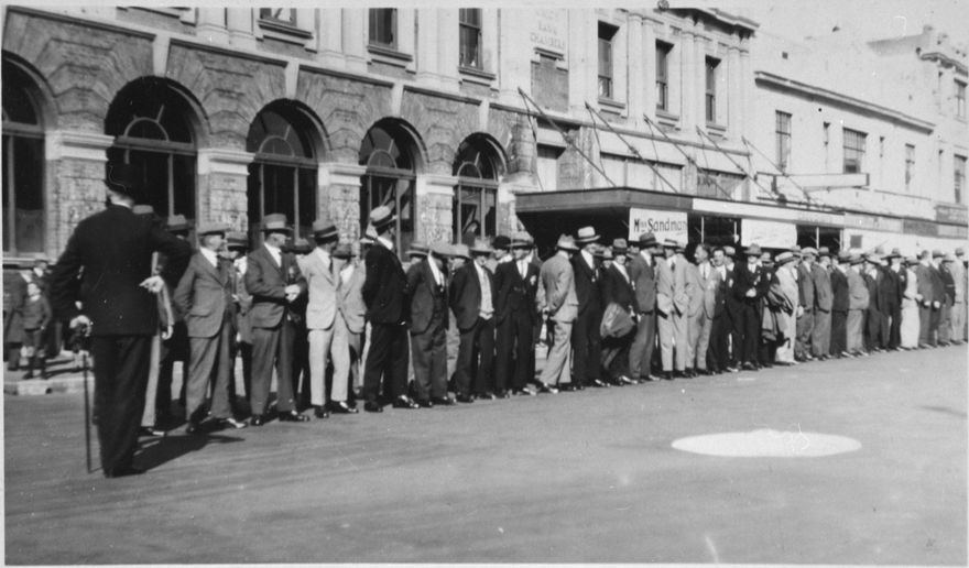 The Wellington Regiment's returned servicemen's annual church parade. The men assembled in Coleman Place before parading through The Square.