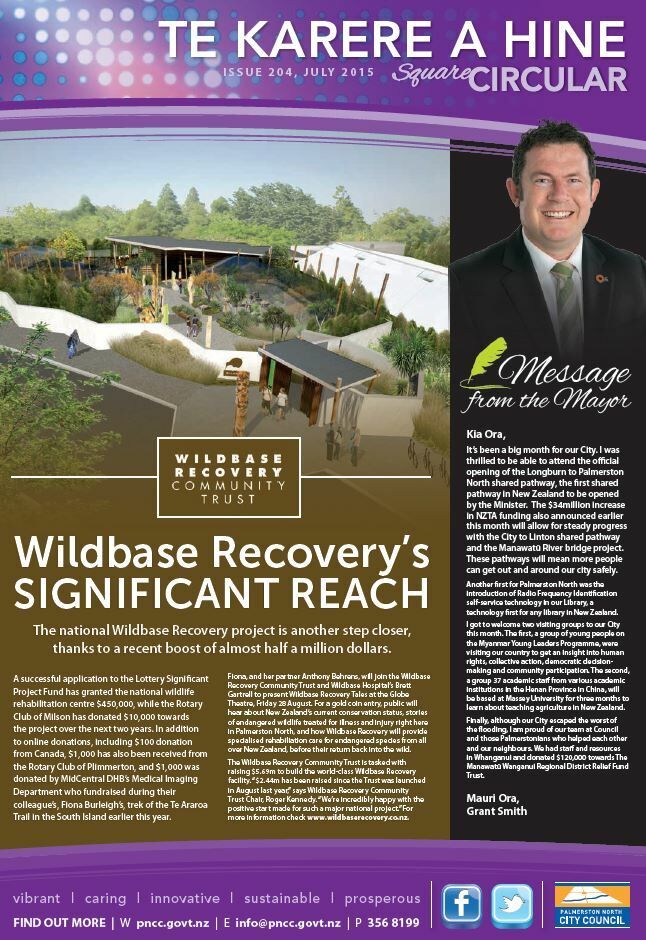 The Square Circular was Palmerston North City Council's monthly community publication, informing Palmerstonians of PNCC initiatives, activites, and events. This month's issue includes: Wildbase Recovery Centre; Grant Smith; home insulation, civil defence; neighbourhood planning; shared pathway between Longburn to Palmerston North; Manawatū River Park; The Globe; 10 year plan 2015-2025; councillor contact details; council meetings.