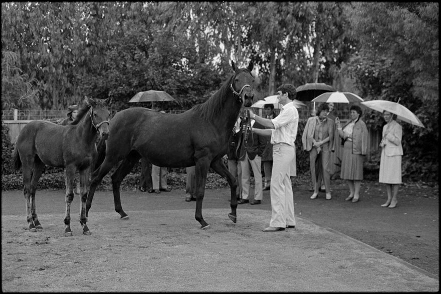 This image was taken by the Evening Standard on the 11th of February 1984 but was not published. It depicts former United States president Jimmy Carter and his wife Rosalynn visiting Highden Park - Herrick and Judy Perry's thoroughbred stud farm at Awahuri.