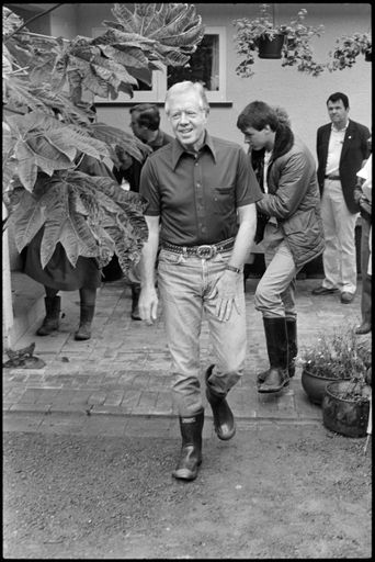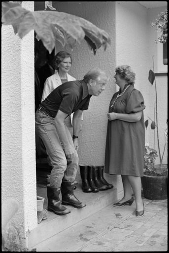 This image was taken by the Evening Standard on the 11th of February 1984 but was not published. It depicts former United States president Jimmy Carter and his wife Rosalynn visiting the hobby-farm of Richard and Barbara Walton at Aokautere.
