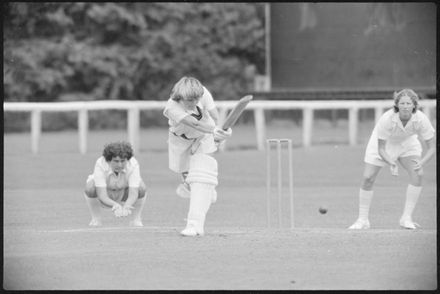 This image was taken (but not published) by the Evening Standard on either the 27th or 29th of December 1980. It depicts a moment of action from the Hallyburton Johnstone Shield 2-day match between the Auckland and Canterbury women’s cricket team...