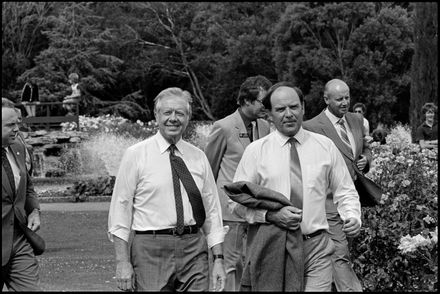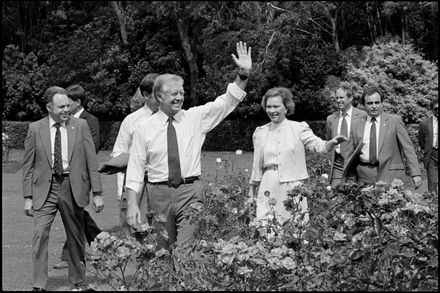 This image was taken by the Evening Standard on the 12th of February 1984 but was not published. It depicts former United States president Jimmy Carter and his wife Rosalynn arriving at the Pascal Street Stadium for the Lloyd Morgan Lions Clubs c...