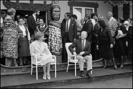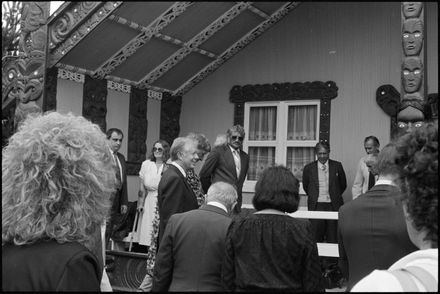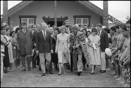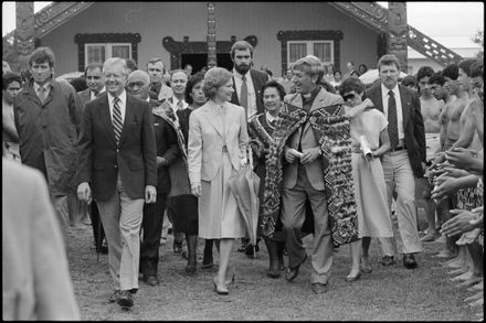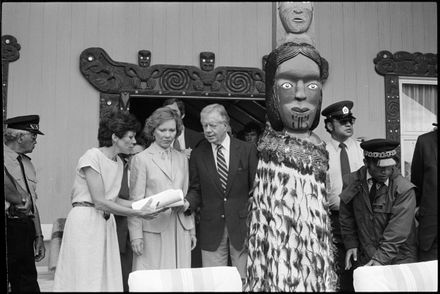 This image was taken by the Evening Standard on the 11th of February 1984 but was not published. It depicts former United States president Jimmy Carter and his wife Rosalynn leaving Parewahawaha marae in Bulls.