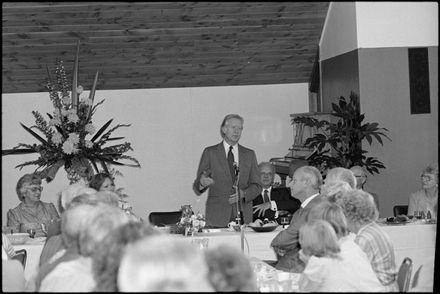 Former U.S. President, Jimmy Carter, speaking at Central Baptist Church. During February 1984, President Carter spent three days in Palmerston North. For more information see Tina White’s “Memory Lane” article in the Manawatū Standard (2018-10-27).