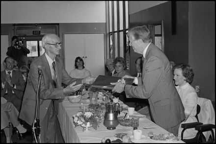 Former U.S. President, Jimmy Carter, meeting members of the Central Baptist Church congregation. During February 1984, President Carter spent three days in Palmerston North. For more information see Tina White’s “Memory Lane” article in the Manawa...