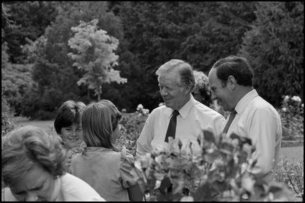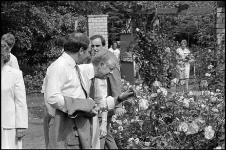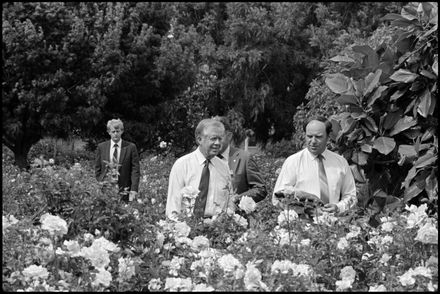These images were taken by the Evening Standard on the 11th of February 1984 but were not published. They depict former United States president Jimmy Carter with Palmerston North Mayor Brian Elwood on a tour of the Dugald McKenzie Rose Garden at ...